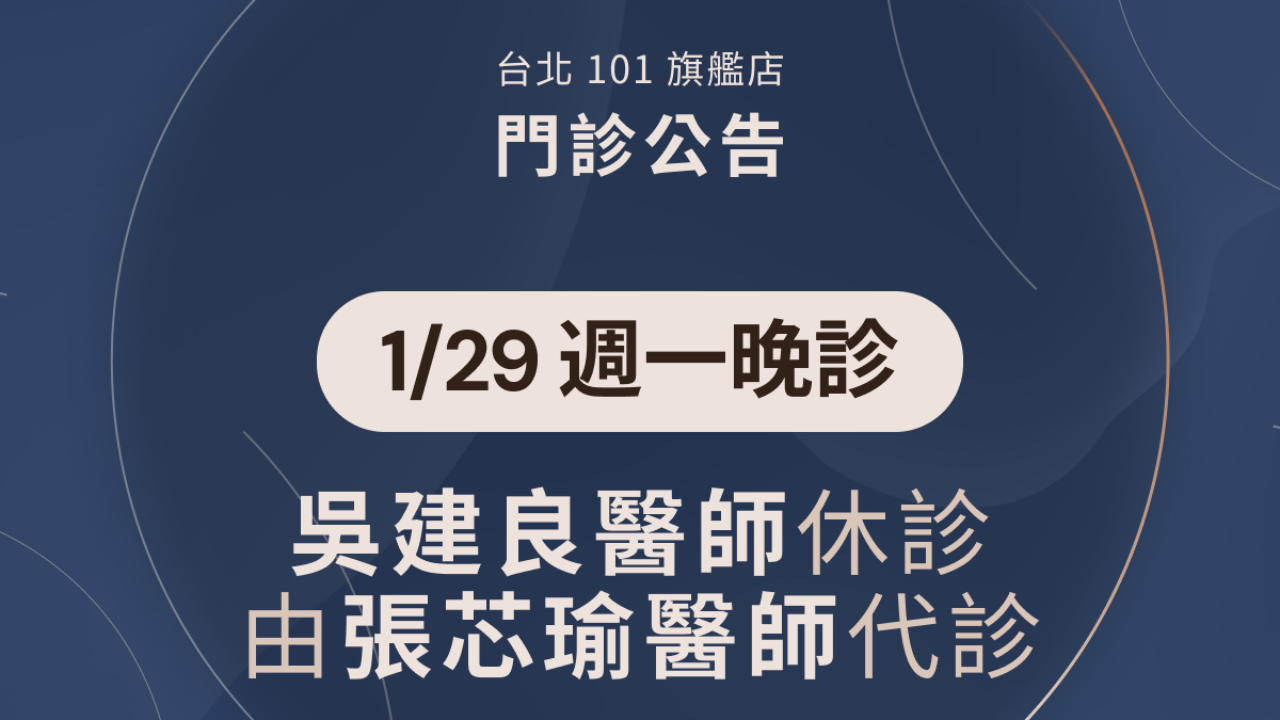 Read more 台北 101 旗艦中心【門診異動】 2024 年 1 月 24 日 / 0 1/29 (一) 晚診將由張芯瑜醫師代診 如有造成不便,還請多加包涵 有任何問題,歡迎再與遠見眼科聯...