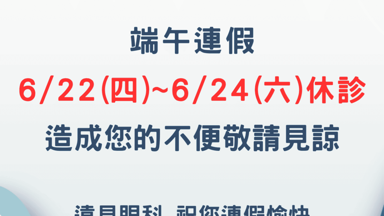 【端午連假】6/22(四)~6/24(六)休診 遠見眼科 祝您連假愉快