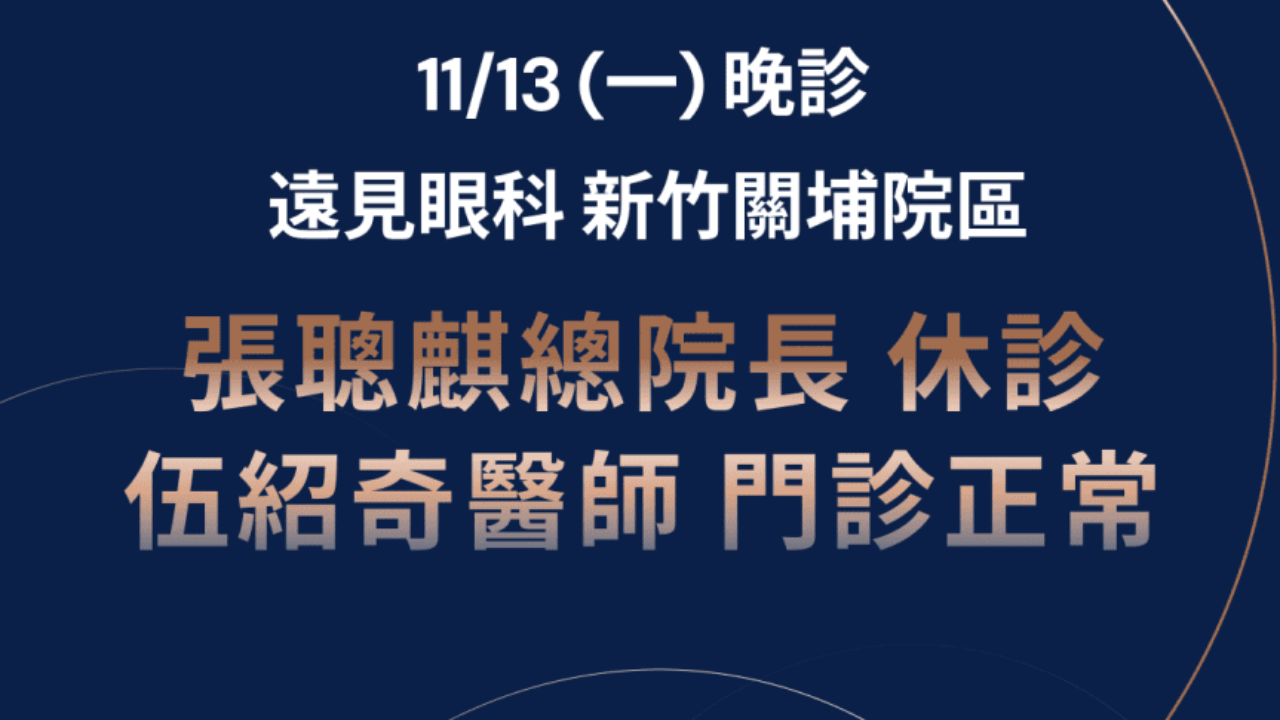 新竹關埔院區 – 門診異動公告 11/13 (一) 晚診 張聰麒總院長 休診 伍紹奇醫師...