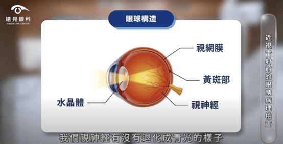 研究發現,高度近視者出現眼睛相關病變的風險較高,且近視的度數越高,病變的風險也越高,因此張醫師強調,近視雷射的術前檢查會從患者的角膜、水晶體到眼底的視網膜等細部結構進行全面掃描,包含了解水晶體有沒有白內障、視網膜有沒有任何的破洞、黃斑部有沒有任何的病變、視神經有無退化形成青光眼等,因上述這些狀況都會影響到視覺品質,一旦未先處置就貿然進行手術,術後的視覺品質自然也不理想。