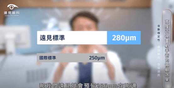 一般來說,近視雷射後角膜基質層厚度,根據國際標準至少保留 250um(微米),遠見眼科標準為 280um(微米),提高術後的角膜強壯度。