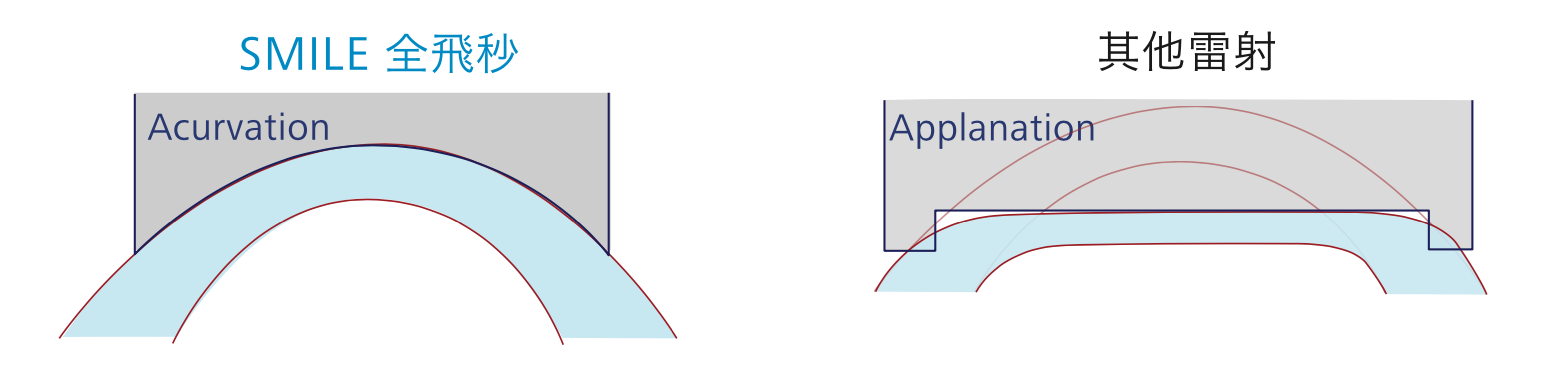 SMILE全飛秒能夠穿透角膜表面,將雷射精準作用於角膜基質層,掃描出近似超薄隱形眼鏡形狀的角膜,稱之「角膜透鏡」。