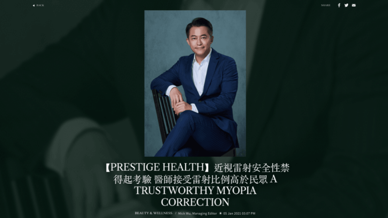 Read more 近視雷射安全性禁得起考驗|PRESTIGE HEALTH 品雜誌 2022 年 1 月 11 日 / 0 醫師接受近視雷射比例高於民眾 新竹遠見眼科診所張聰麒院長表示,身為眼科醫師,自然對於視覺品質、立體感...